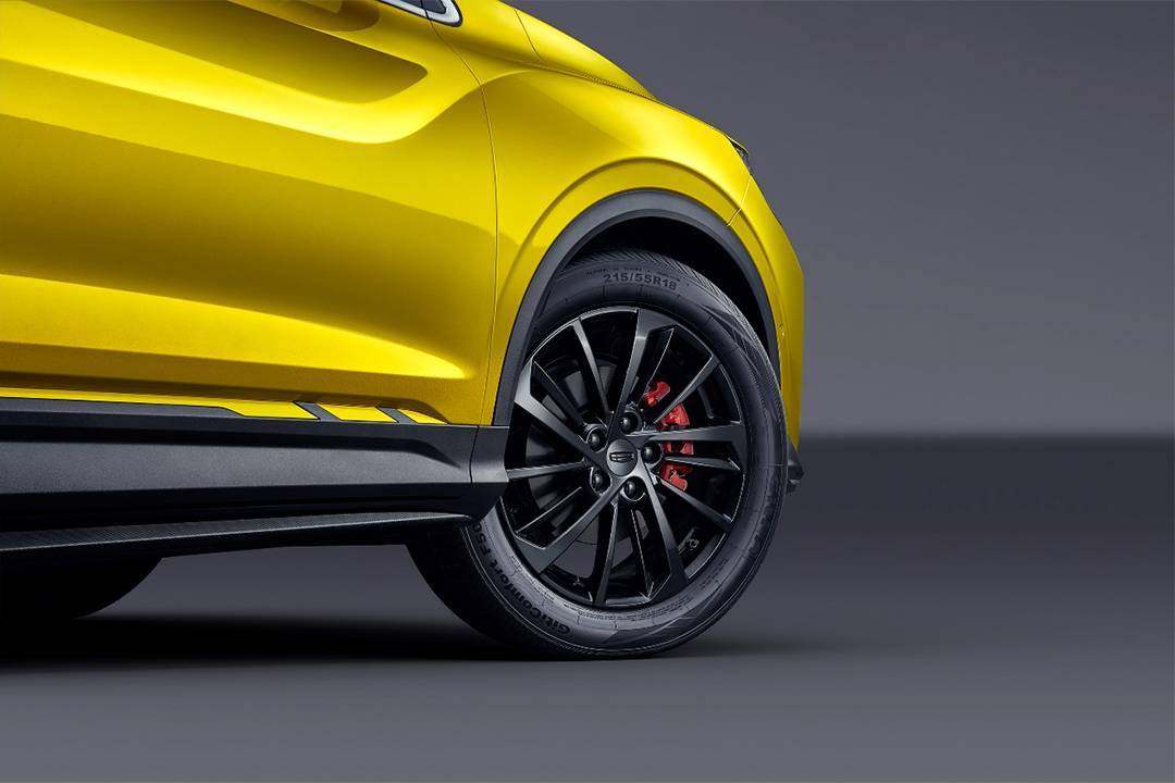 新缤越的车身线条十分丰富,双腰线贯穿整个车身,其中一条腰线平直锋利,另外一条变化丰富,就像猎豹的肌肉线条一般,为新车营造出极强的力量感。另外,新车上黑下黄的双色车身,再搭配18英寸黑色铝合金轮毂和红色刹车卡钳,进一步提升了新车的小钢炮属性。