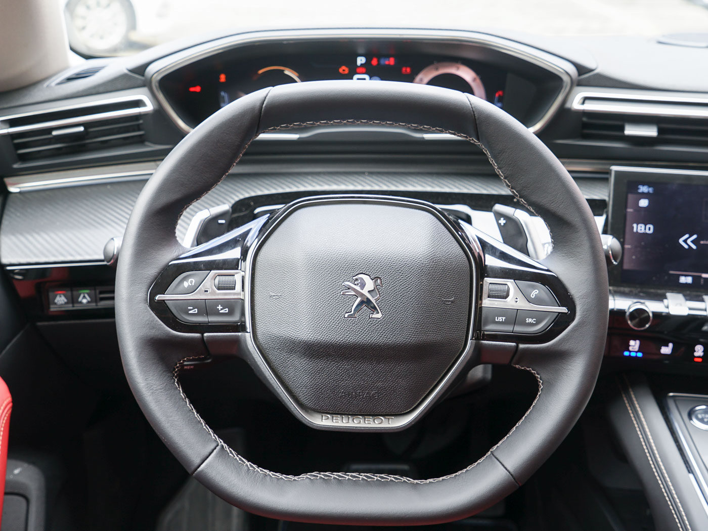 最明显的莫过于508的方向盘设计,双幅造型加上类似于八边形的设计,与传统的圆形方向盘形成鲜明的对比,而且方向盘尺寸相比传统方向盘较小,加上轻盈的转向,508驾驶起来甚至有一种赛车的感觉。