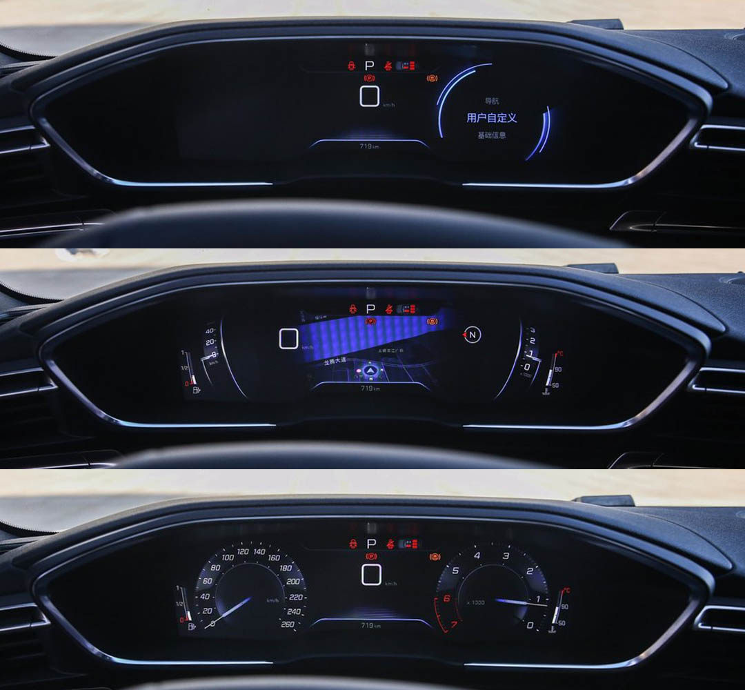 而科技化主要体现在车内的两块大屏上,12.3英寸的全液晶仪表以及8英寸(高配版为10英寸)中控屏做到了全系标配。六边形边框内的全液晶仪表界面设计极具科技感,并且还支持不同风格的界面以及用户自定义;同时值得一提的是这个液晶仪表还支持夜视功能。