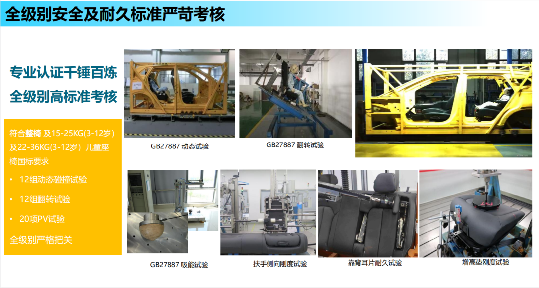 而在耐久考核方面,全新荣威RX5 PLUS的全球首款量产集成式儿童安全座椅遵循车规级性能要求,考虑各种极端情况,结合所有使用工况,在靠背耳片、坐垫抬升耐久试验5千次,扶手耐久试验1万次,整椅颠簸耐久试验15万次,扶手垂直疲劳试验1万次及扶手水平疲劳试验5千次。通过大数量高频次测试,实现了远超国标要求的质量,能够从容应对各种应用场景。按照每天翻折一次计算,全新荣威RX5 PLUS的全球首款量产集成式儿童安全座椅可供家庭用户安心使用13年。