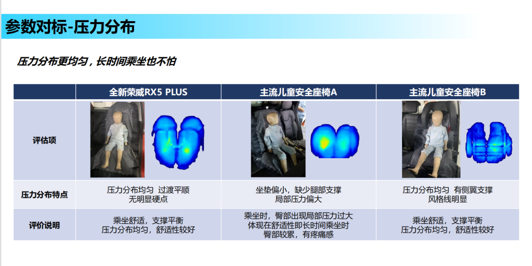全新荣威RX5 PLUS的全球首款量产集成式儿童安全座椅除了拥有出色安全性和可靠性,更是兼顾了舒适性,拥有39mm超厚坐垫,触感柔软、Q弹十足,压力分布更均匀,且支持耳片无极调节,相比传统儿童座椅普遍小于10mm的发泡厚度,在颠簸路面上还可以起到更好的吸能作用,大大提升了乘坐的舒适感、