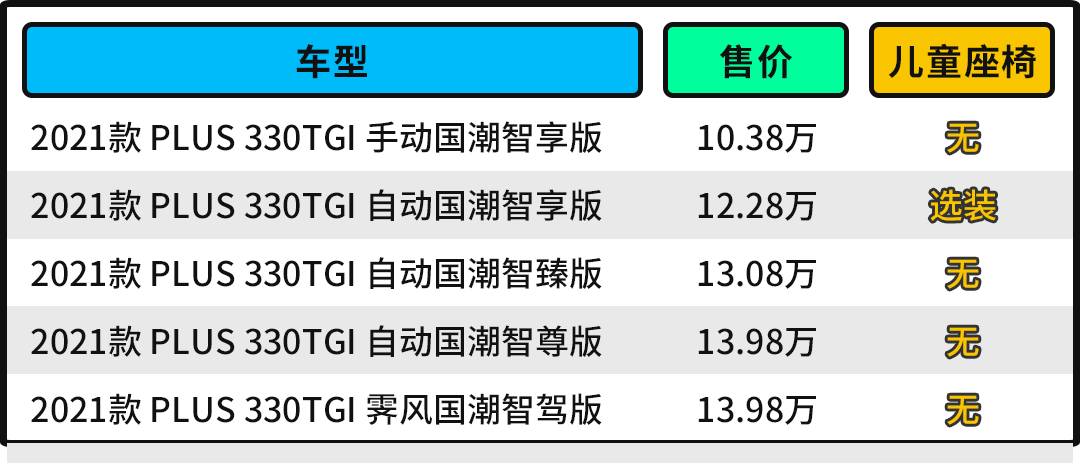 在全面了解全新荣威RX5 PLUS的全球首款量产集成式儿童安全座椅之后,相信大家更关注其是否全系标配以及集成式的儿童安全座椅安装在哪个位置,根据官方信息,考虑到不同用户的用车需求,该集成式儿童安全座椅并非标配,目前只有次低配车型——2021款 PLUS 330TGI 自动国潮智享版提供了选装,较低的购买门槛能让用户轻松体验到,相信这也是最为走量的版本。