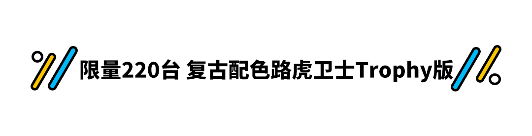 近日,有媒体曝光了一组关于路虎卫士Trophy版官图,限量220台,仅面向北美市场。新车最大的亮点在于,拥有黑配橙的这种比较复古的车身配色,细节之处例如前门侧采用了早期较为复古的路虎车标设计,有种新老碰撞的韵味在里面。