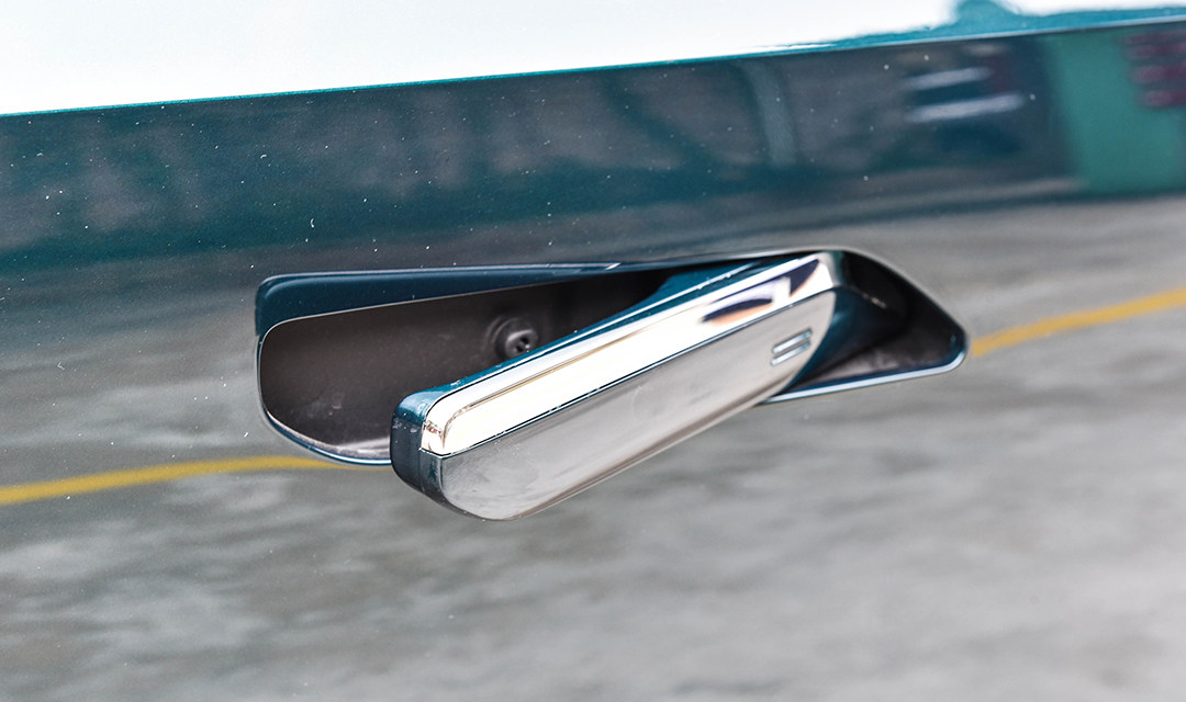 其次是在门把手方面上,传统燃油车型采用的传统门板手;而混动版本则是采用了新能源车型比较常见的隐藏式门把手,这两种门把手的优缺点大家都比较熟悉了。
