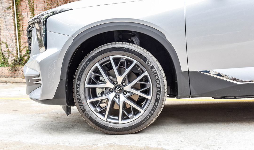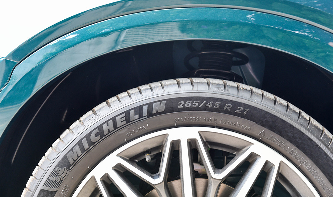 燃油版本车型的规格为255 50 R20,而混动版本车型的轮胎规格为265 45 R21,轮胎宽度很大。值得一提的是,后者大多数情况是作为选装版本出现的。