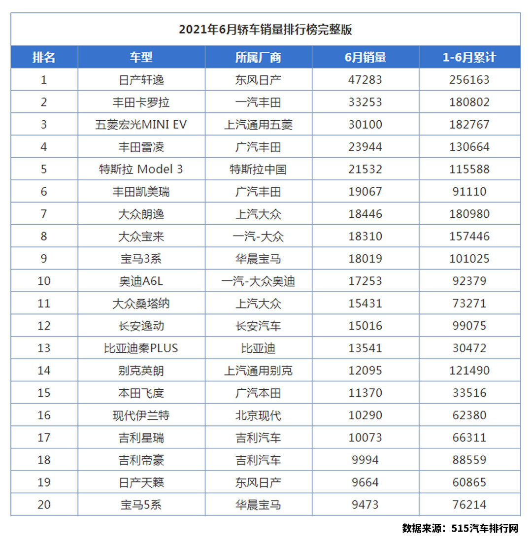 但在轿车领域,卡罗拉、轩逸等合资车型依旧是目前市场中最畅销的产品。不过近些年随着中国自主品牌口碑的不断升温,不少中国自主品牌的轿车产品在市场上的口碑以及销量也在逐渐水涨船高。以6月份销量数据为例,五菱宏光MINIEV以30100辆的月销量登上了轿车销量榜第三的位置,成为了目前最受欢迎的中国自主品牌轿车产品。