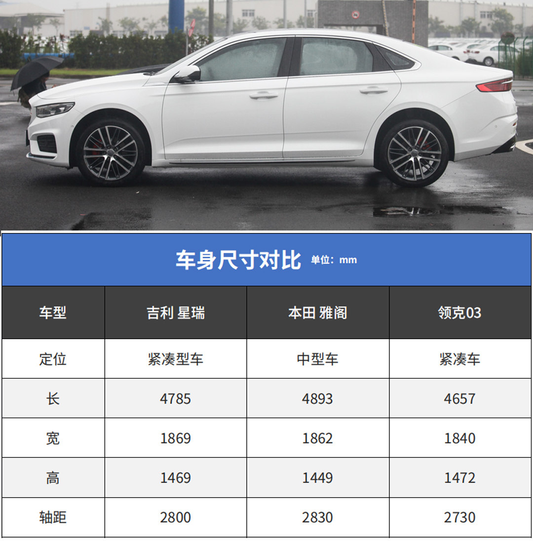 而星瑞最备受关注的当然还是车辆越级的尺寸以及空间表现,星瑞的长宽高达到4785/1869/1469mm,轴距更是达到了2800mm,车辆的轴距达到了足以与部分B级车媲美的水准,得益于车身尺寸上和空间水准亮眼表现,为星瑞在A级车的横向对比中占据了绝对的优势。