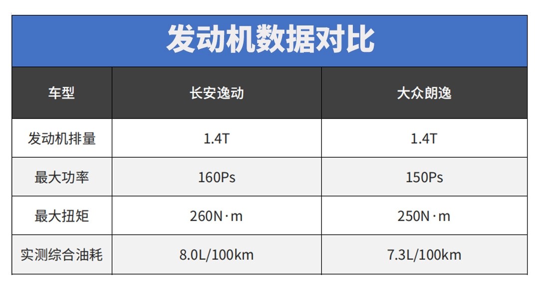逸动搭载的这台1.4T发动机正是蓝鲸NE平台下的发动机产品,而350bar高压燃油直喷、双VVT可变气门正时技术的加持也为车型本身增添了不少看点。从账面数据来看,逸动搭载的这台1.4T发动机最大功率达到160Ps,最大扭矩达到260N·m,甚至要比大众旗下代号EA211的1.4T发动机更强。而在油耗方面,逸动实测油耗为8.0L/100km,如果与大众朗逸的1.4T相比还是能够看出两者在技术方面的差距。