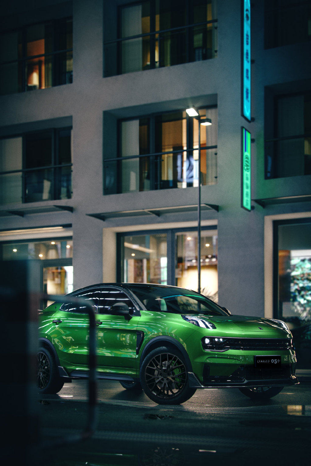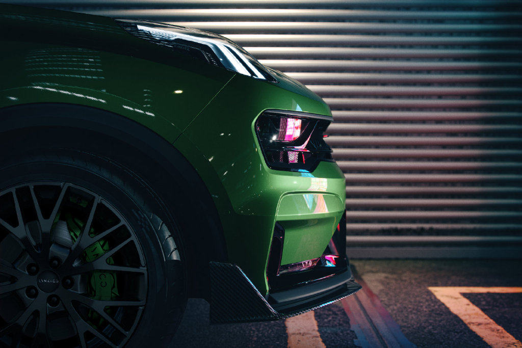 1、 基于领克05车型的设计风格,细节上更彰显性能车的气势