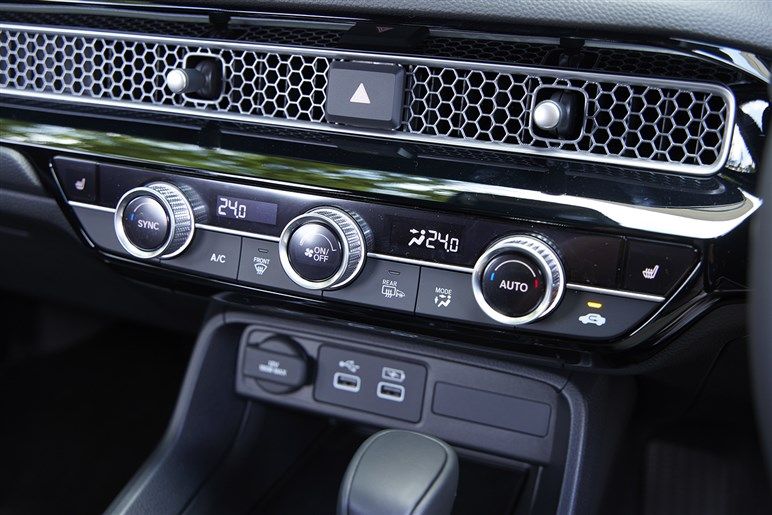 第十一代思域内饰上,有着翻天覆地的变化,映入眼帘的是水平贯穿的空调出风口,内部蜂窝状的装饰板,整体以简约风格为主。