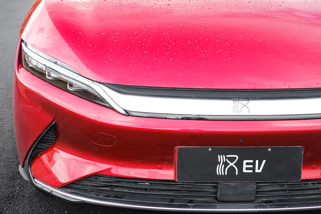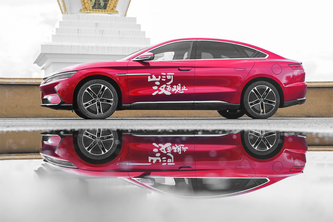 外观方面,汉EV采用了比亚迪家族“Dragon Face”设计语言,前脸贯穿式镀铬条设计灵感来源于“龙须”元素,扁平的造型,也营造出低趴的视觉效果,当然了,点睛之笔莫过于浮雕式的“汉”字体,将细节突显的淋漓尽致。