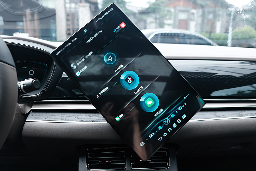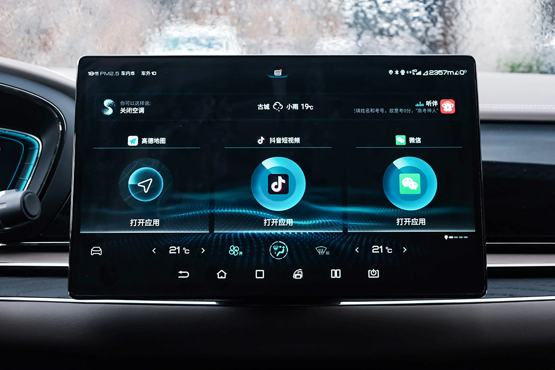 而内置的DiLink 3.0车机系统,UI界面变得更加简洁明了,并配备了多种第三方应用,例如车载微信、车载抖音、腾讯视频等,增添了娱乐属性。另外,中控屏幕还支持竖式显示效果,一定程度上满足不同用户的用车需求,但屏幕竖式显示后略有些阻挡驾驶员前方的视野。