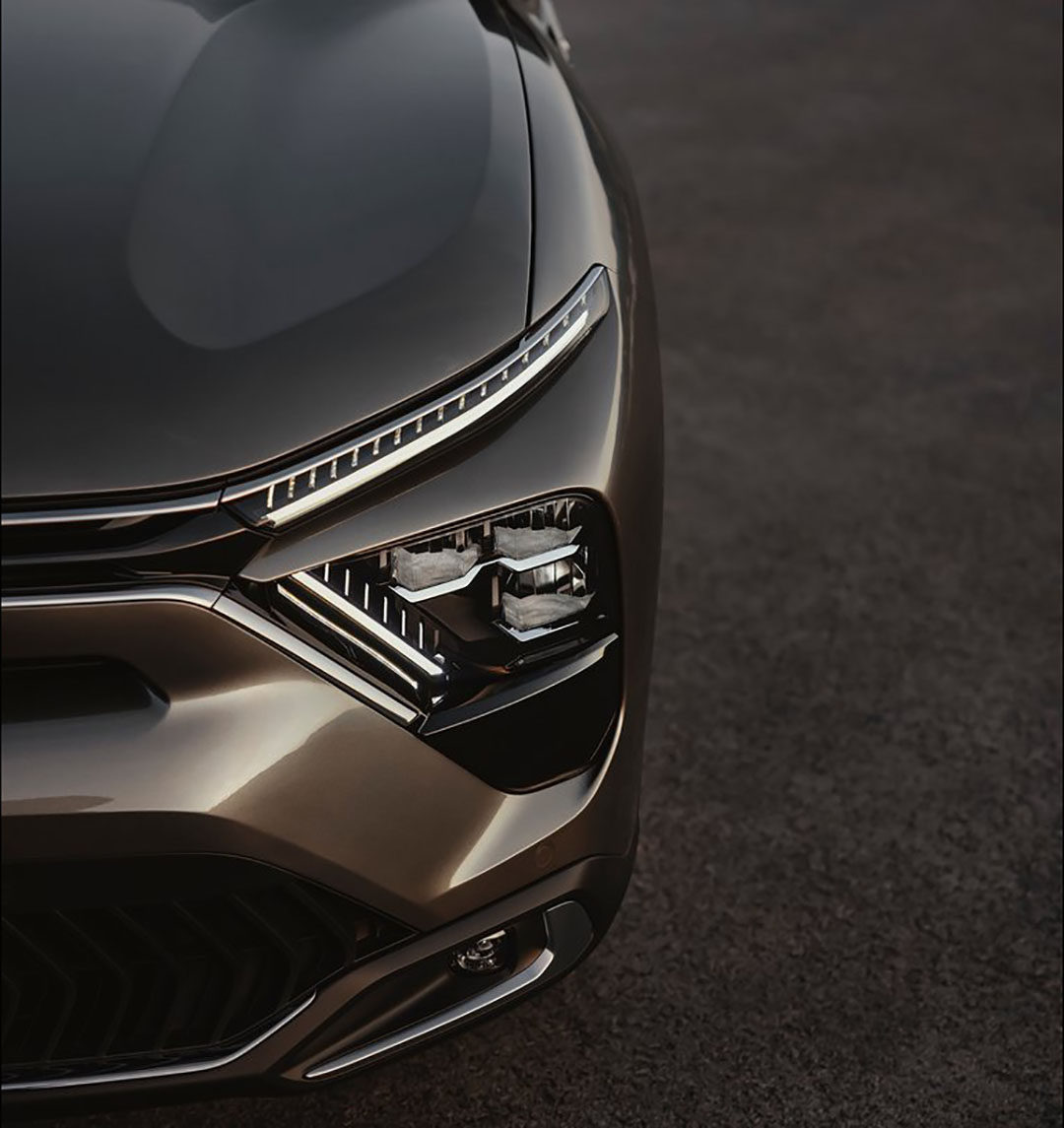 全新雪铁龙凡尔赛C5 X前脸使用“X”型元素,灵感来源于CXperience概念车,同时加入了众多其前身CX20的设计元素,通过法式的设计将其重新赋予新的理解。
