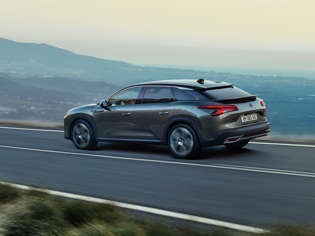 侧面来看,车辆离地间隙会比传统轿车更高,配合上黑色的轮眉设计,让C5X有一种跨界车的味道,同时黑色塑料件又能减少车身的厚重感。此外,车顶是凡尔赛C5 X的亮点,在C柱之后车顶下沉,形成溜背式设计同时还不影响后排乘客的头部空间。