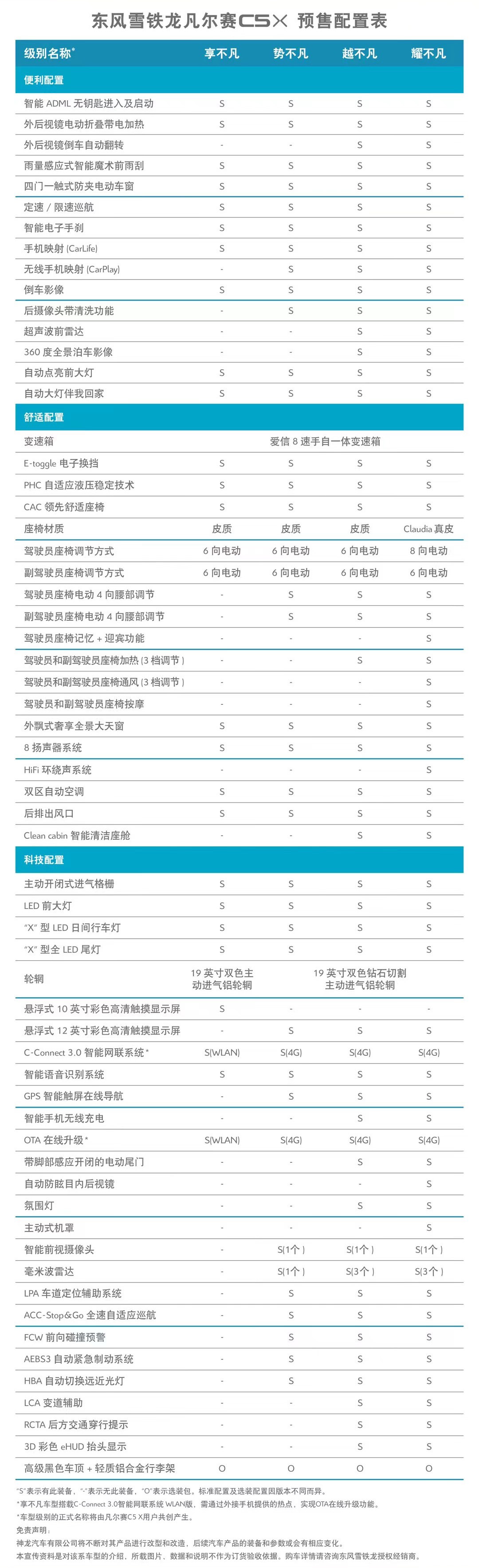 下面是凡尔赛C5 X的详细配置表,有兴趣的同学们可以看看哦!