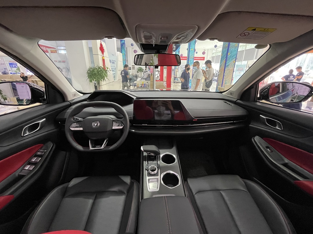 坐进全新长安CS55 PLUS的车内,这一套设计同样还是来自于UNI序列的科技范风格。相较于现款车型,新车取消了大家都在采用的“双联屏”设计。扁平化仪表搭配悬浮式中控大屏错落布局很好的营造出时尚科技感感。
