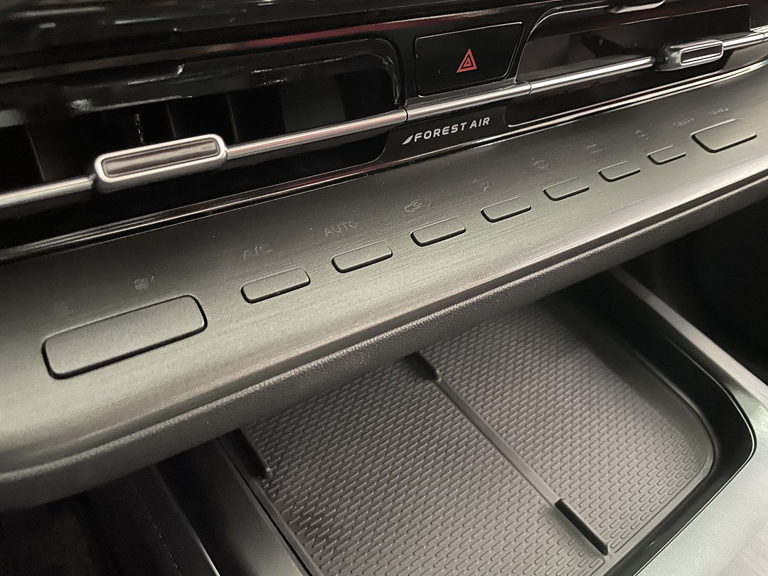 而空调控制区的按钮设计得十分精致,空调物理按键区的设计完美的解决中控布局设计的美感与实用性之间的平衡。
