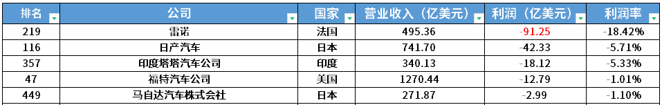 受疫情影响,在入榜世界500强的23家车企中,共有4家车企在2020年出现了不同程度的亏损,其中雷诺的亏损最大,达到了91.25亿美元(约合人民币591.0亿元)。