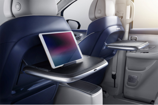 内饰方面,新车也实现了令人期待的升级。第一排座椅后方加装了小桌板,为用户解锁更多实用出行场景。对儿童来说,小桌板不仅可以放置零食、玩具等,还能为他们写写画画提供便利;对成年人来说,小桌板能平稳摆放电脑、平板等,方便他们追剧、打游戏,以及临时办公。同时,新车还将“魔吧”这一特色配置调整为双层大储物盒,提升车内物品收纳能力。