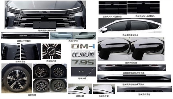 从目前的申报图信息可以看出,比亚迪F5会根据车型版本提供一系列选装,其中包括有高亮电镀格栅、前雷达+前摄像头、轮毂+轮芯盖、尾部字标、天窗、侧风装饰条、外后视镜等。
