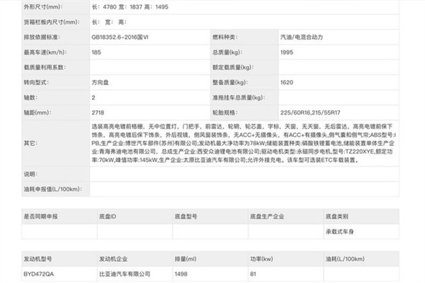 动力方面,比亚迪F5将会搭载DM-i超级混动系统,为1.5L DM-i,其最大功率为81kW,峰值扭矩135Nm。虽然油耗未明确标示,不过同样可参考同级别、同动力总成的秦Plus DM-i车型,百公里油耗为3.8L左右。