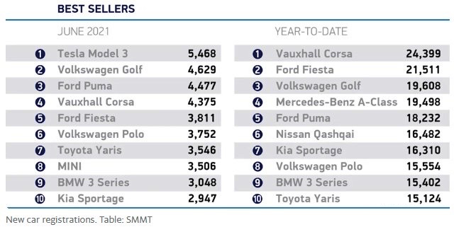英国汽车制造商和贸易商协会SMMT公布数据显示,Model 3 以5,468 辆的业绩成为6月全英最畅销的汽车,让一众畅销的燃油车型黯然失色。