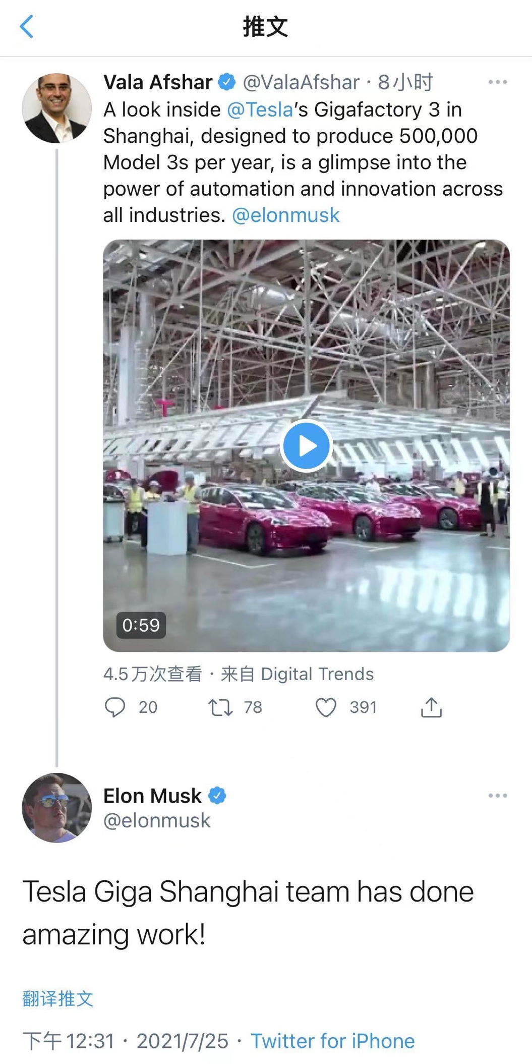 显然,特斯拉已然成为"中国制造"在世界范围内的一张靓丽名片。特斯拉CEO埃隆·马斯克毫不吝啬的称赞道:"特斯拉上海超级工厂团队所做的工作实在太赞了!"