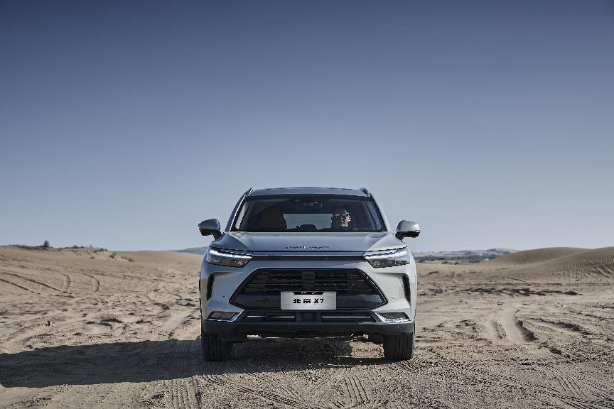 茫茫沙海的壮丽是很多朋友向往的景色。但是在这壮美的景色背后,却是对车辆品质的极限挑战。这几天天气晴朗,烈日暴晒之下,沙漠的地表温度已经接近了70摄氏度,长时间的沙漠路段行驶,北京X7在这里表现出了优良的散热性能以及稳定的动力输出性能。