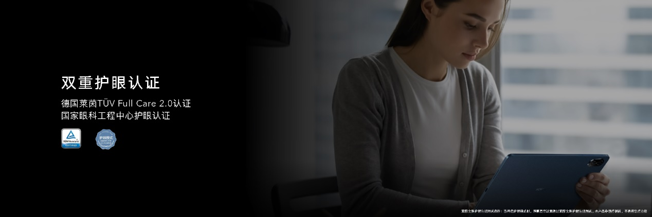 视觉上的提升之外,这块屏幕还支持120Hz高刷新率,能带来流畅的使用体验。配合荣耀特有的GPU Turbo科技,可以在低功耗下高效处理游戏画面。此外,荣耀平板V7 Pro还通过中国国家眼科工程中心护眼认证和德国莱茵TÜV Full Care 2.0认证,让用户的使用体验更加舒适。