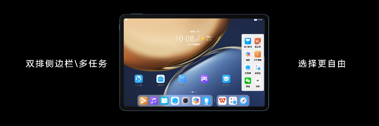 基于Magic UI 5.0在平板生态的专属优化,荣耀平板V7 Pro带来了全新的生产力桌面,布局更自由,效率提升一目了然。常用的侧边栏及多任务窗口界面,荣耀平板V7 Pro提供更符合视觉习惯的显示窗口,将侧边栏一分为二,并对多任务界面进行持续优化,为用户提供大视野,更高效智慧的选择;针对悬浮窗也进行了全新的设计,在底部新增了滑动触控功能,化繁为简,手势轻松操作。