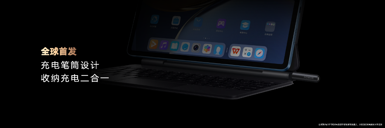 荣耀针对平板电脑的应用场景不断探索,针对移动办公场景创新性的开发更富有创造力的配件。打造了平板、Magic悬浮键盘、Magic-Pencil 2 “三位一体”的硬件生态,让荣耀平板V7 Pro拥有了超越平板、直逼笔记本的使用体验,具备更强的创造力。(Magic悬浮键盘、Magic-Pencil 2非荣耀平板V7 Pro标配,需要另行购买)