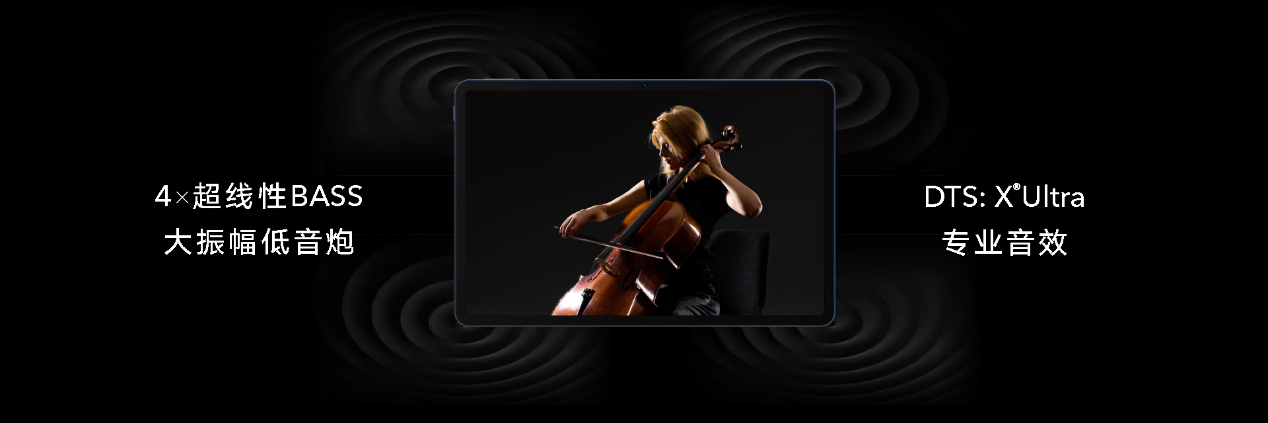听觉方面,为了打造优秀的音质,荣耀平板V7 Pro配备4个大振幅扬声器,增加响度的同时提供浑厚的低频享受;4扬声器对称布局,尽享立体沉浸效果;4超线性BASS低音炮确保低音深邃、高音嘹亮。尤其在DTS:X® Ultra音效加持之下,荣耀平板V7 Pro的震撼音效更能体现得淋漓尽致,为用户提供身临其境的影音体验。