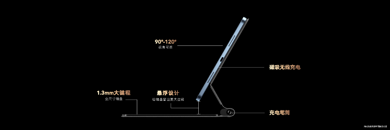 本次发布的荣耀Magic悬浮键盘,采用莱茵认证的抗菌材料,支持触控板操作,采用的磁吸悬浮设计。通过无感蓝牙连接配对,支持90°-120°可调节,拥有全局语音输入功能,可以智能转化文本。荣耀Magic悬浮键盘,还是安卓唯一一个配备手写笔充电收纳仓的蓝牙键盘,轻松收纳手写笔之余,还可以让手写笔与平板同时进行充电,并采用人性化的防尘设计,让平板、键盘和笔真正成为一体化的创造力工具。在触控板上,荣耀还加入了单指侧边外推返回、三指上滑返回桌面等便捷实用的手势交互,进一步提升使用效率。