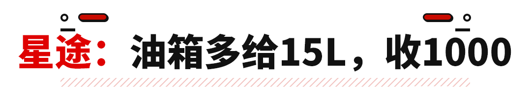 比同配置的星耀版贵了1000元,但原先50L的油箱升级到65L,以满足用户对大油箱、多跑路的用车需求。