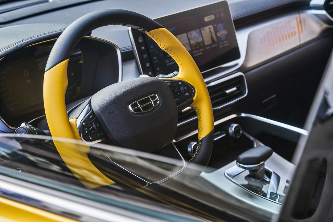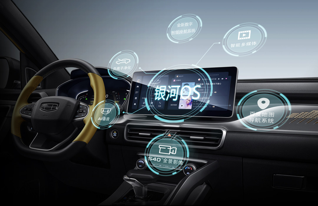 12.3英寸的屏幕搭载基于E02平台的吉利银河OS系统,新车配备的E02数字智能座舱平台使用12nm制作工艺,CPU算力相比上一代提升3.3倍,运算速度更快、响应更迅速、操作更流畅,此外,系统采用全新UI界面设计。