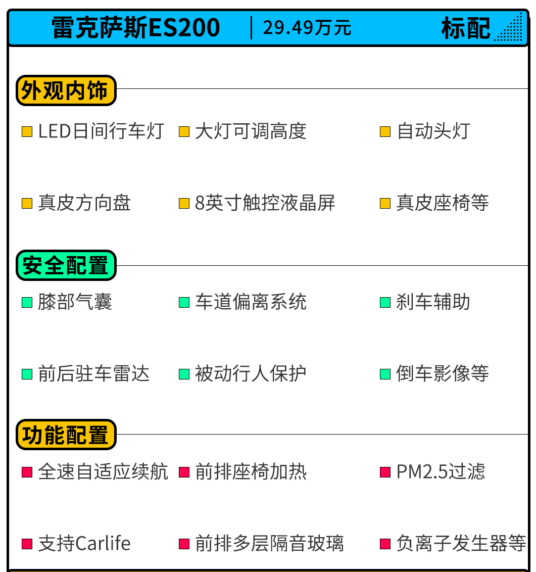 全新雷克萨斯ES根据版本配置的不同一共推出十款车型,而在这其中该如何选择那还得从全新雷克萨斯都标配啥说起。全速自适应巡航、多层隔音玻璃、被动行人保护等功能的标配突显出雷克萨斯ES在三十万价位竞争之中的优势。
