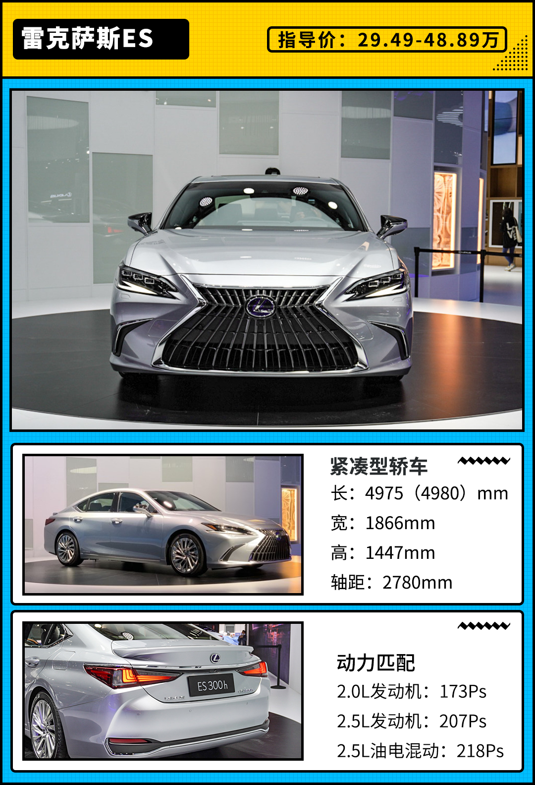 动力方面,改款后的雷克萨斯ES提供2.0L和2.5L两种动力可选用户选择,前者最大功率173马力,最大扭矩208牛·米,传动系统匹配CVT无级变速箱;后者最大功率207马力,最大扭矩243牛·米,传动系统将根据不同配置的车型匹配8AT或CVT变速箱。而ES系列混动车型搭载2.5L自吸四缸发动机与单电机组成的混动系统,综合功率为218马力,匹配E-CVT电子无级变速箱,WLTC综合油耗低至4.8L/100km。