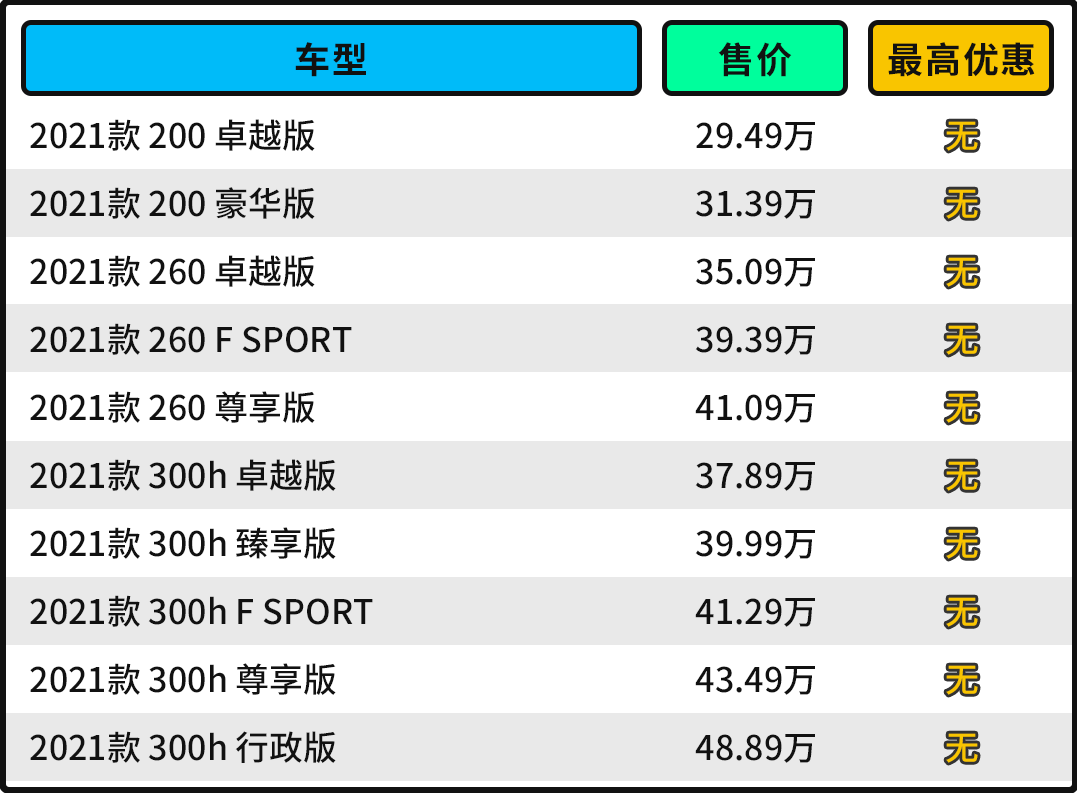 新款ES共推出了10个车型版本,指导价为29.49-48.89万元。在买买君看来,当中最值得购买的是指导价37.89万元的300h卓越版虽然比价格方面比低配车型高出不少,但配置方面增加了很多安全性、舒适性配置,追求成熟、霸气的朋友可以看看,这也是ES主流客户的最佳选择,也是此次上市的10款车型中买买君最为推荐的车型。