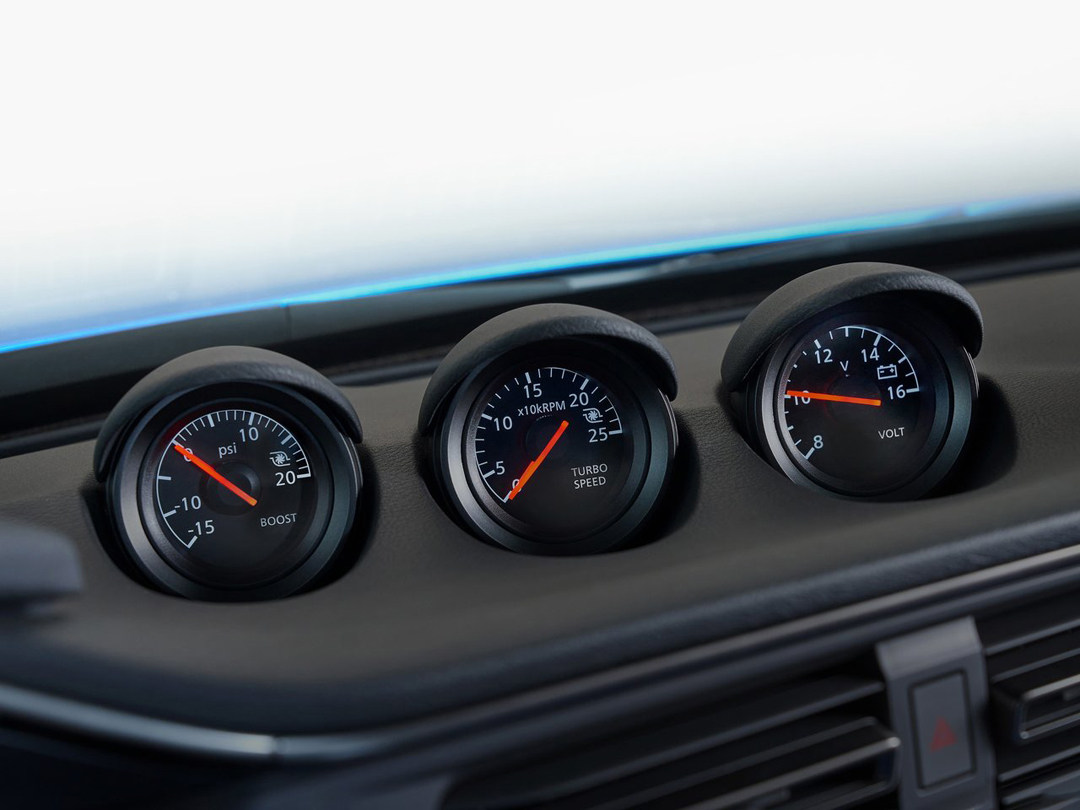 全液晶仪表UI经过重新设计,使其更符合Z用户的显示需求,在运动模式时会将转速中置,顶部的升挡灯帮助车主拥有最佳的换挡时机,同时还会将增压值、G值、油温、水温显示在仪表盘上。