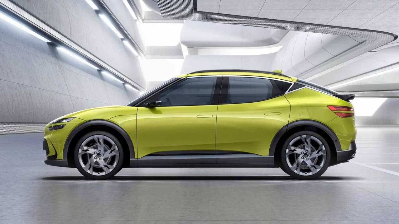 捷尼赛思官方将新车定义为纯电动跨界SUV,溜背式的车身造型设计不会在新车上缺席,同时新车的A柱和B柱进行了熏黑处理,从而营造出了悬浮式车顶的视觉效果。另外,新车车身下方配置了宽厚的侧裙和前后轮眉,以及五辐式大尺寸轮毂,不仅提升新车的运动性能,还让新车具备一定的越野性能。