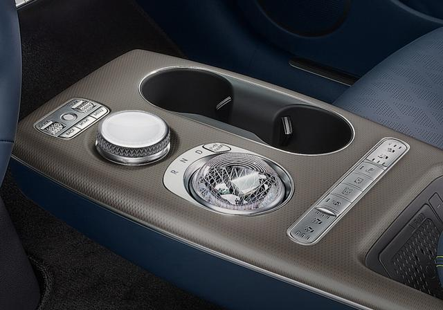 与其他豪华车型一样,新车的中央扶手区域采用平台式设计,其最亮眼的设计莫过于上面的水晶球设计,这是一种球形线控换挡 (SBW)机构,当用户准备开车时,水晶球就会旋转,转换成SBW,当用户熄火时,水晶球就会成为车辆的情绪灯,该设计不仅能起到提示用户车辆驾驶状态,还能让新车与用户情绪互动,进一步提升了驾驶者的人车交流体验。