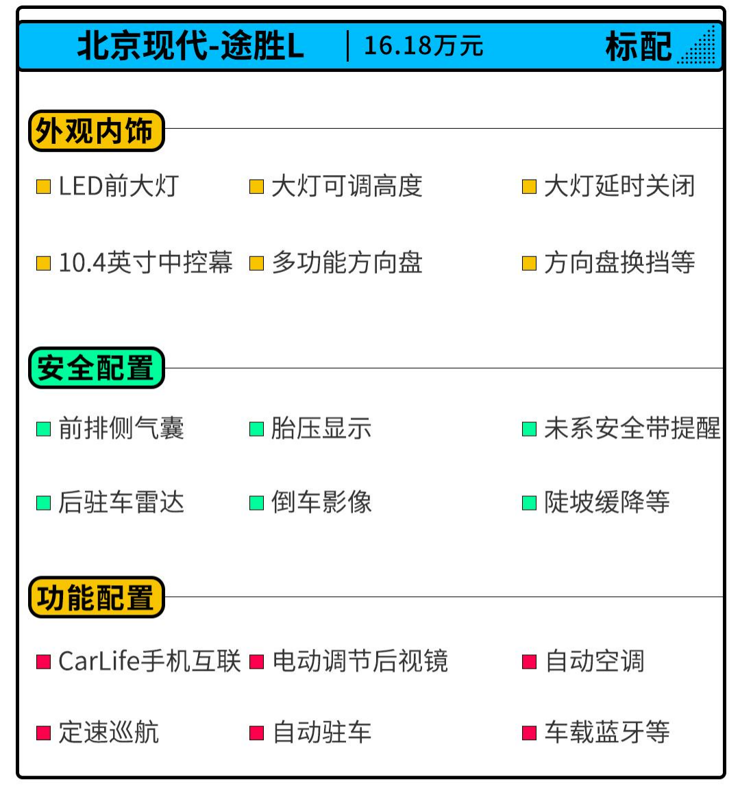 但如果说,我们把目光放远一些,看下其它合资品牌我们会发现,嗯,原来还会有更高性价比的车型可选,甚至还能以更优的价格获得越级的体验,而现代途胜L正是充当着这种角色,只是消费者对韩系车还是抱有一定的偏见,同时过于超前的设计理念消费者们一时间也难以接受,这或许是它最大的弊端吧,但除此之外,不管是从它的价格、配置、动力或者是空间,都展现出了超高性价比的一面,作为一款合资车该做的都已经做到了,甚至还有点超纲。