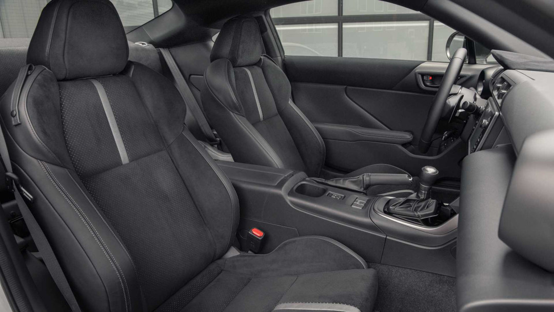 而且材质方面也有了很大提升,其中档杆、方向盘等位置是采用了皮革进行包裹,而运动桶型座椅更是用上了翻毛皮材质,而且座椅的乘坐体验也更好了,在激烈驾驶的场景下能带来更好的包裹性。当然了,GR 86的后排座椅依然是象征意义大于实际意义,因为几乎没有成年人能在后排乘坐超过5分钟,只能应急使用。