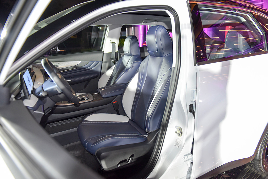 进入车内让教授比较惊讶的是,头顶上这款超大尺寸的全景天窗,1.7㎡超广角光感天幕之下有着1.16㎡的超大透光面积,既开透了视野,还能让后排乘客告别头部空间压抑。不过也希望这块天幕在隔热性上给力一些,毕竟在南方城市,那个太阳可不是开玩笑的。