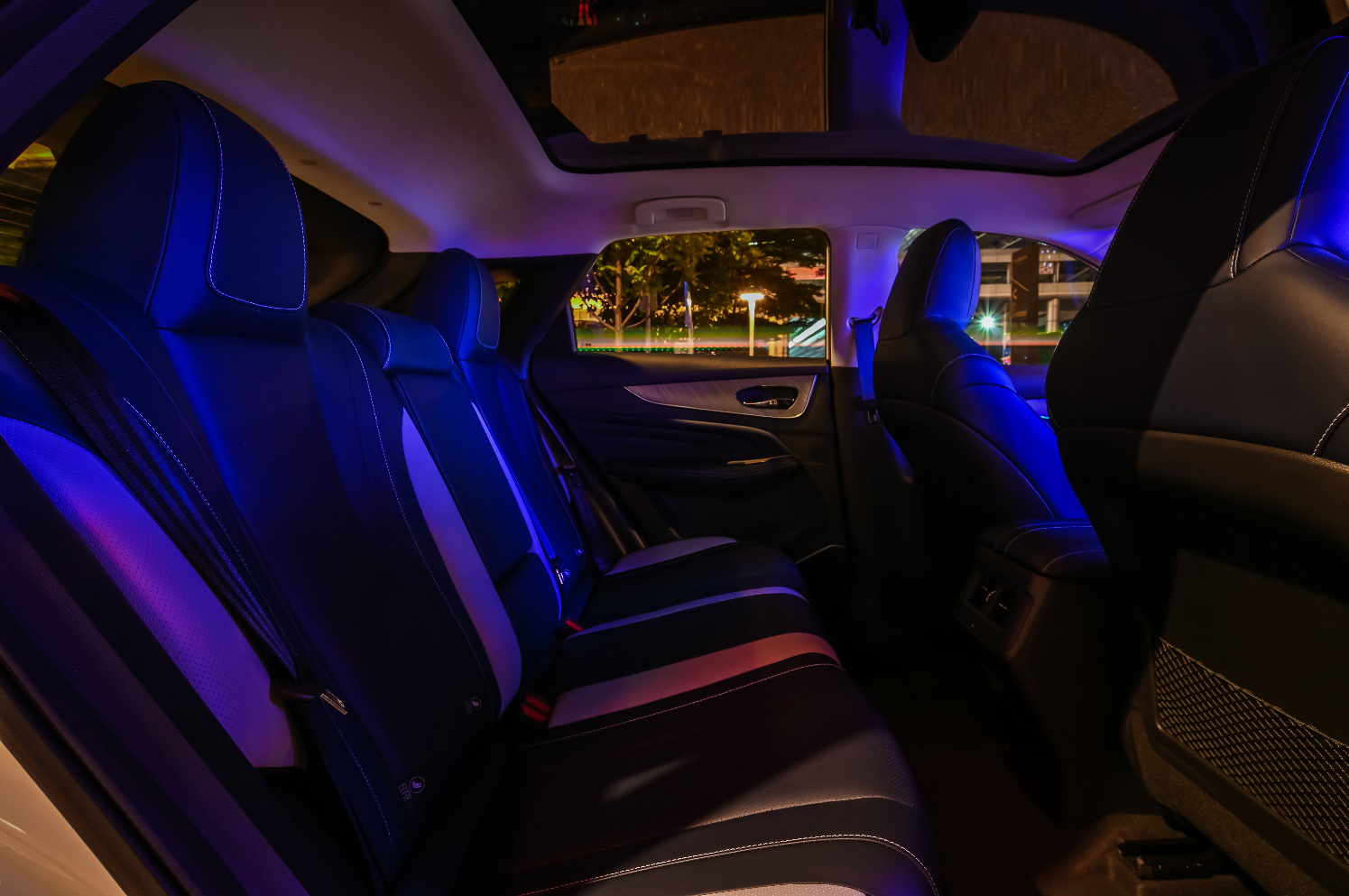 如果你觉得这还不够意思的话,该款新车还有64色极光氛围灯,可根据个人喜好进行颜色调节,并且有6种智能模式,夜晚时刻偶尔想体验下不同的氛围也是可以的。