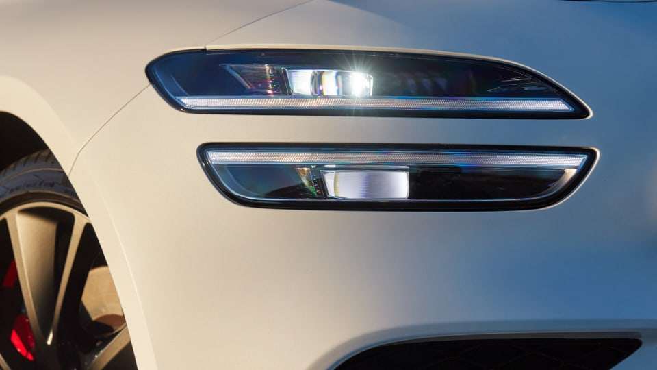 熟悉捷尼赛思的朋友可以看出捷尼赛思G70使用了家族最新的设计语言,二段式分体大灯以及倒三角的前进气格栅具有极高的辨识度,与目前国内在售的捷尼赛思G80有着异曲同工之处。