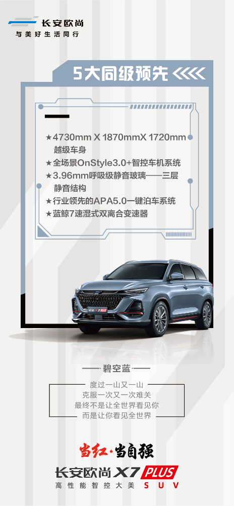 本次长安欧尚X7PLUS的登场,凭借着五大行业领先、五大行业首创、五大同级领先、五大全系标配足以体现出对消费者的十足诚意,相信在深刻洞察了当今消费者的用车需求后,新车将以极致价值赋能客户的用车生活。8月27日,新车开启全球预售,让我们一同期待!