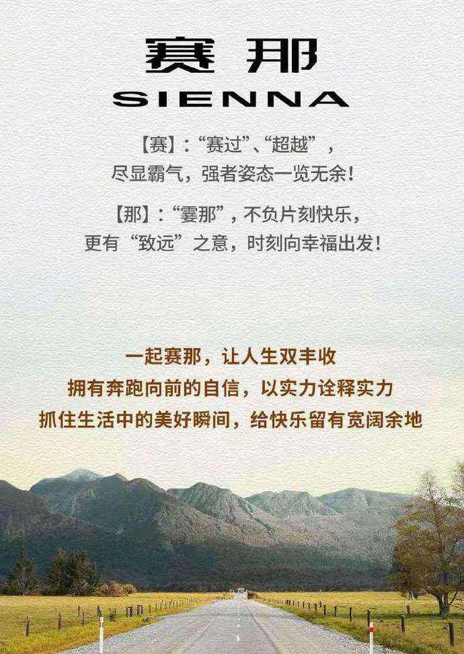 今年6月20日,父亲节这天,广汽丰田正式官宣了SIENNA的中文名“赛那”,官方表示其中“赛”代表赛过、超越的含义;“那”表示霎那,不负片刻的快乐。
