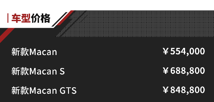 而为了进一步迎合市场的消费升级,保时捷Macan也正式迎来新款上市,其按照性能取向的不同分别推出Macan、Macan S以及Macan GTS三款车型,官方指导售价区间为55.40万-84.80万,新车为中期改款,其主要针对外观、内饰甚至是动力方面进行升级。