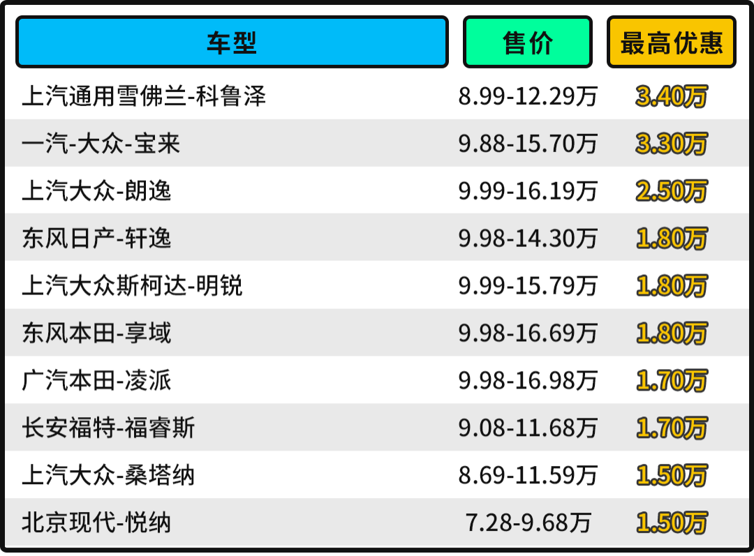 根据之家的降价排行榜单给出的数据显示,部分10万级的合资轿车最高也有30%的价格优惠,相当之夸张,并且当中还不乏有热销车型,那么今天我们就来看看,分别都有哪些优惠力度大,同时也是非常值得购买的车型叭!